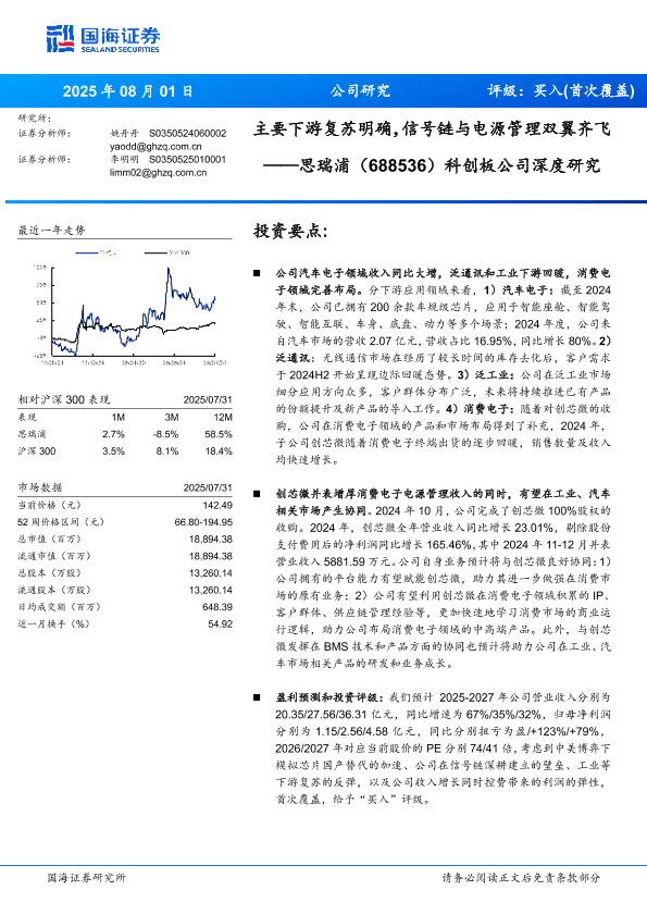 【国海证券】【202507】主要下游复苏明确,信号链与电源管理双翼齐飞——思瑞浦(688536)科创板公司深度研究-29页