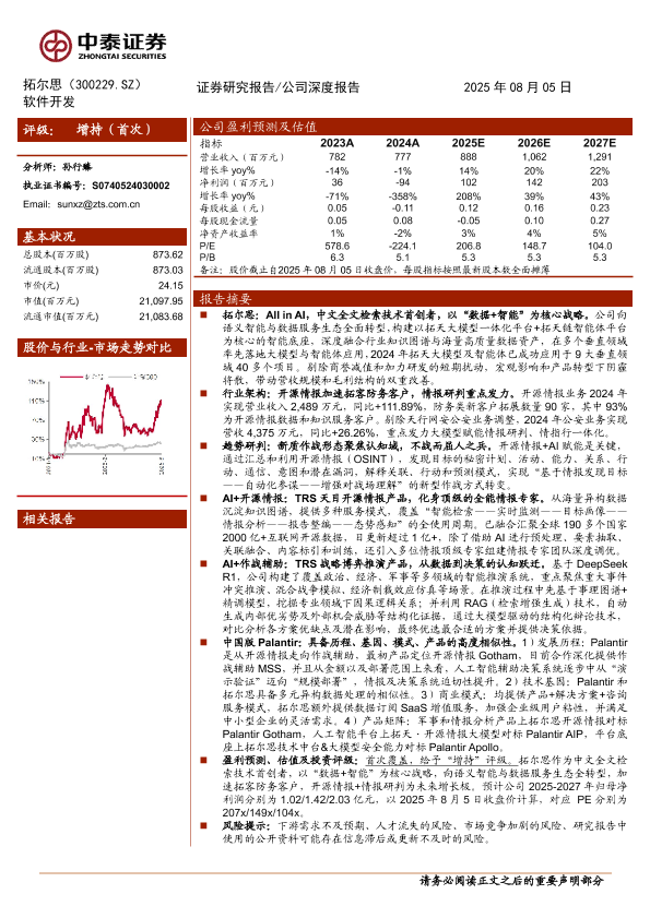 【中泰证券】【202508】拓尔思(300229)AI+agent赋能开源情报专家,打造中国版Palantir-27页