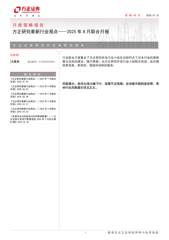 【方正证券】【202507】方正研究最新行业观点——2025年8月联合月报-24页