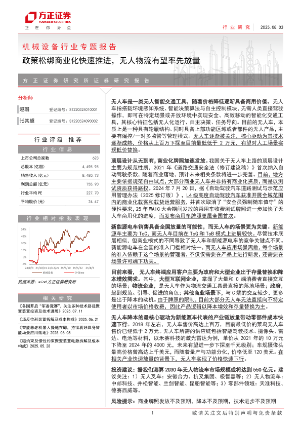 【方正证券】【202508】机械设备行业专题报告:政策松绑商业化快速推进,无人物流有望率先放量-31页