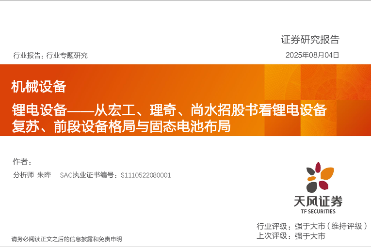 【天风证券】【202508】锂电设备——从宏工、理奇、尚水招股书看锂电设备 复苏、前段设备格局与固态电池布局-34页