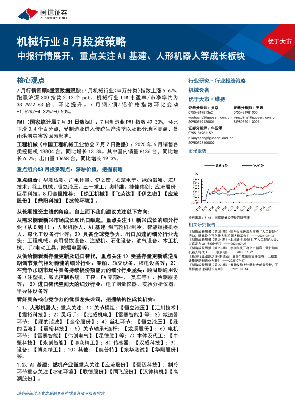【国信证券】【202508】机械行业8月投资策略:中报行情展开,重点关注AI基建、人形机器人等成长板块-24页