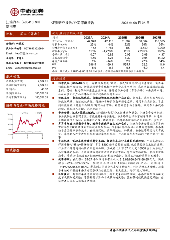 【中泰证券】【202508】江淮汽车(600418)尊界开启超豪华车“自主替代”叙事,高盈利稀缺龙头价值发现-26页