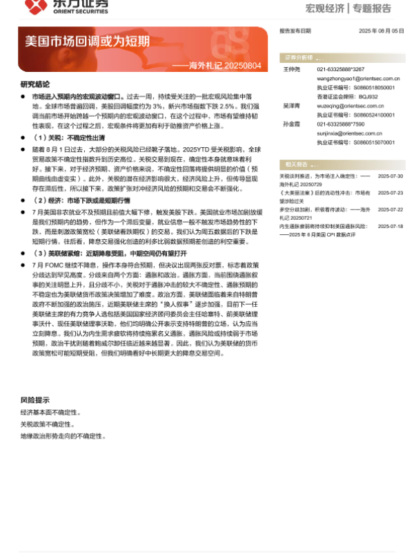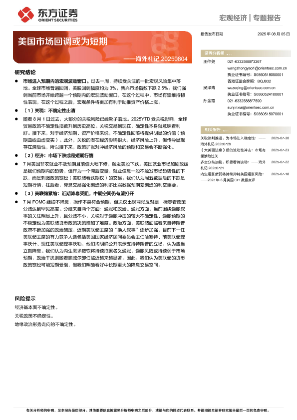 宏观经济 美联储政策 股市分析 关税影响 就业数据