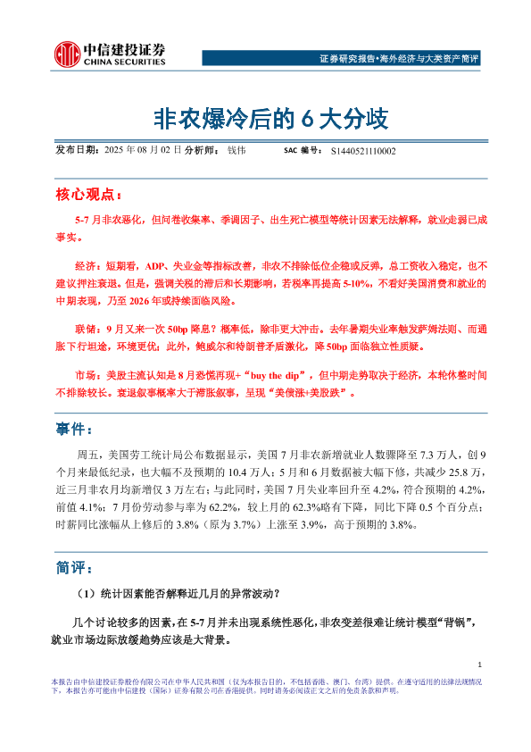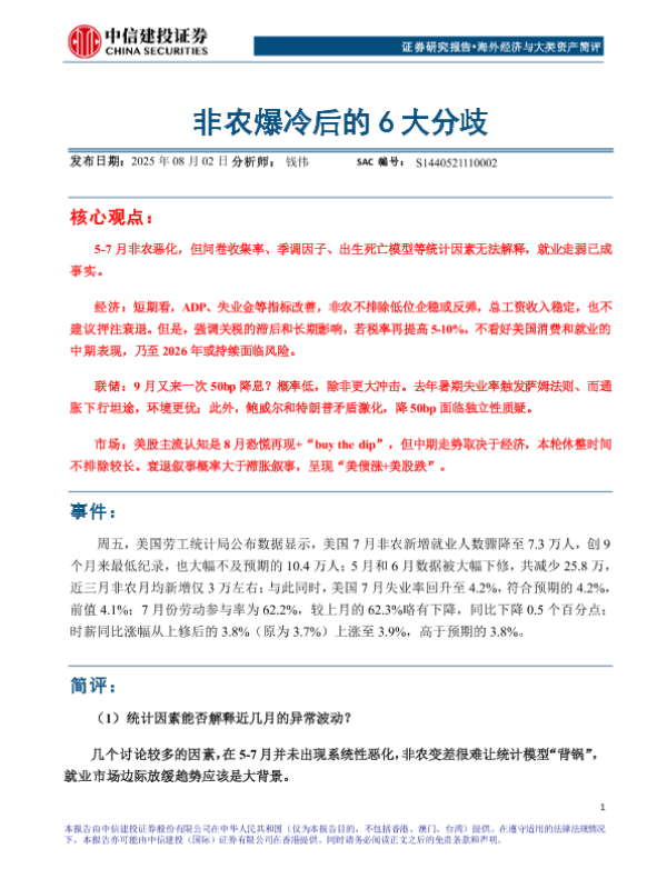 【中信建投证券】【202508】海外经济与大类资产简评:非农爆冷后的6大分歧-10页
