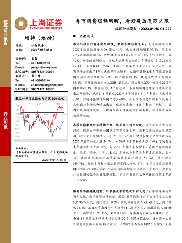 【上海证券】【20230131】社服行业周报:春节消费强势回暖,看好疫后复苏兑现-17页