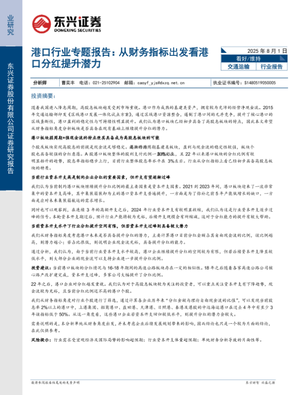 【东兴证券】【202508】港口行业专题报告:从财务指标出发看港口分红提升潜力-20页