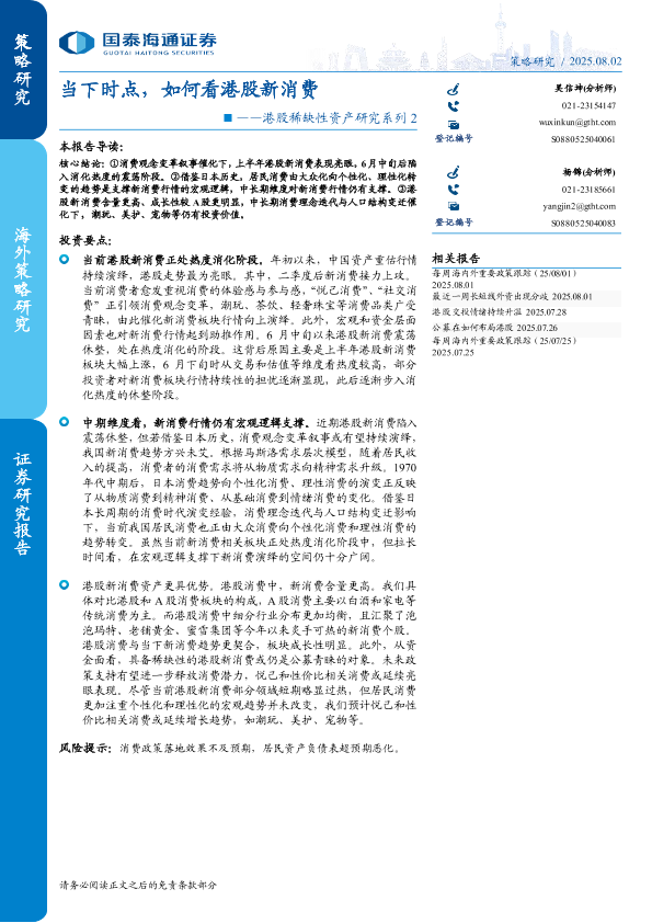 【国泰海通证券】【202508】港股稀缺性资产研究系列2:当下时点,如何看港股新消费-10页