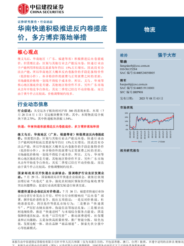 【中信建投证券】【202508】华南快递积极推进反内卷提底价,多方博弈落地举措-16页