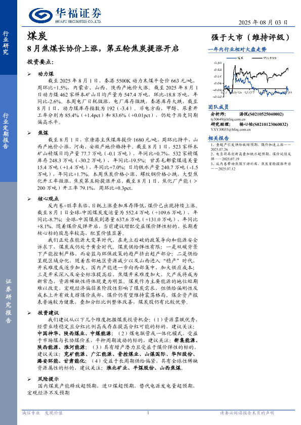 【华福证券】【202508】煤炭行业定期报告:8月焦煤长协价上涨,第五轮焦炭提涨开启-28页