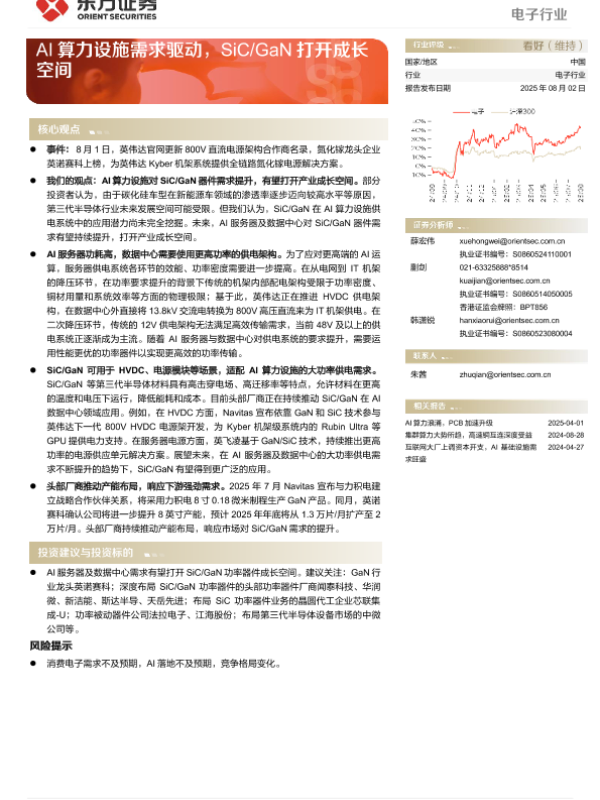 【东方证券】【202508】电子行业:AI算力设施需求驱动,SiC/GaN打开成长空间-14页