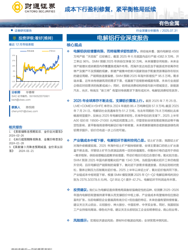 【财通证券】【202507】电解铝行业深度报告:成本下行盈利修复,紧平衡格局延续-31页