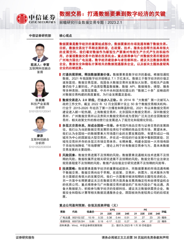 【中信证券】【20230201】科技行业前瞻研究行业数据交易专题:数据交易,打通数据要素到数字经济的关键-31页