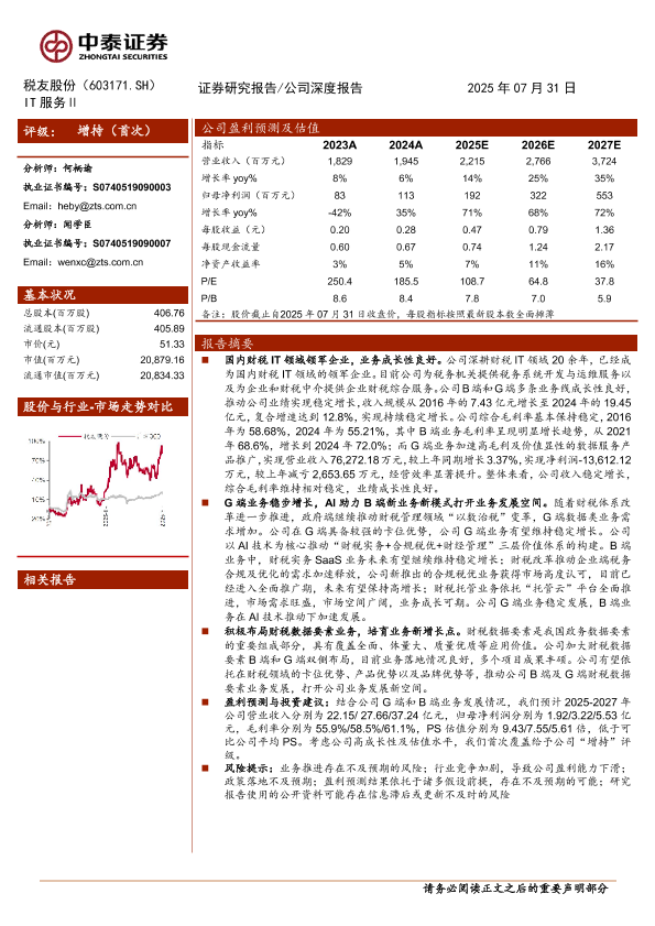 【中泰证券】【202507】税友股份(603171)财税AI平台助力B端打开成长空间,G端业务稳定增长-27页