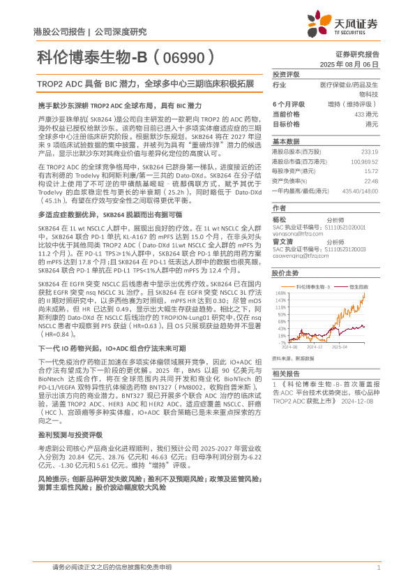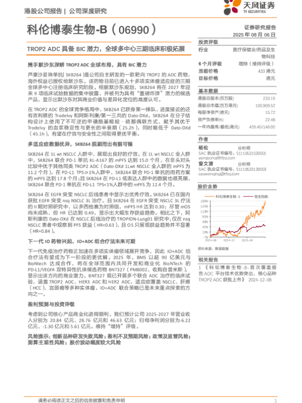 【天风证券】【202508】科伦博泰生物-B(06990.HK)TROP2+ADC具备BIC潜力,全球多中心三期临床积极拓展-20页