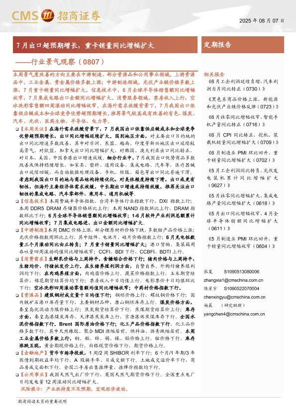 【海通证券】【202508】行业景气观察:7月出口超预期增长,重卡销量同比增幅扩大-32页