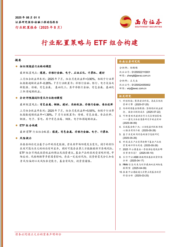 【西南证券】【202508】行业配置策略与ETF组合构建-13页