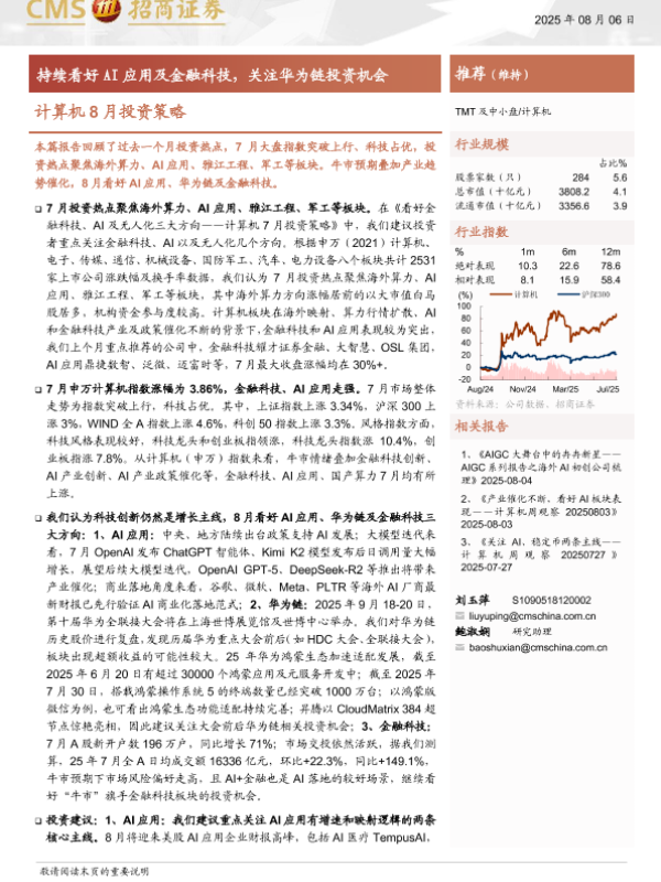 【海通证券】【202508】计算机 8月投资策略 TMT及中小盘/计算机-24页