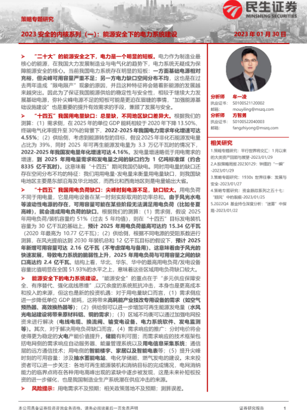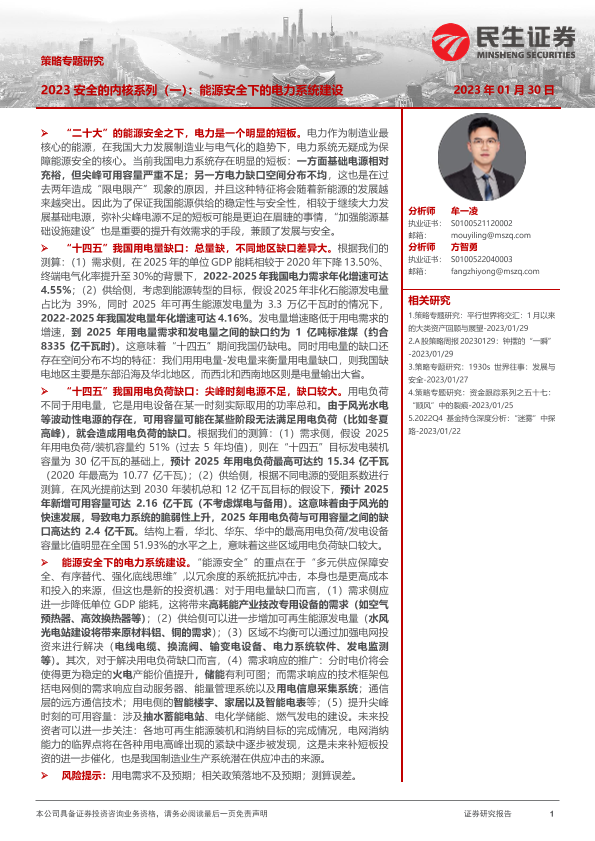 【民生证券】【20230130】2023安全的内核系列(一):能源安全下的电力系统建设-20页