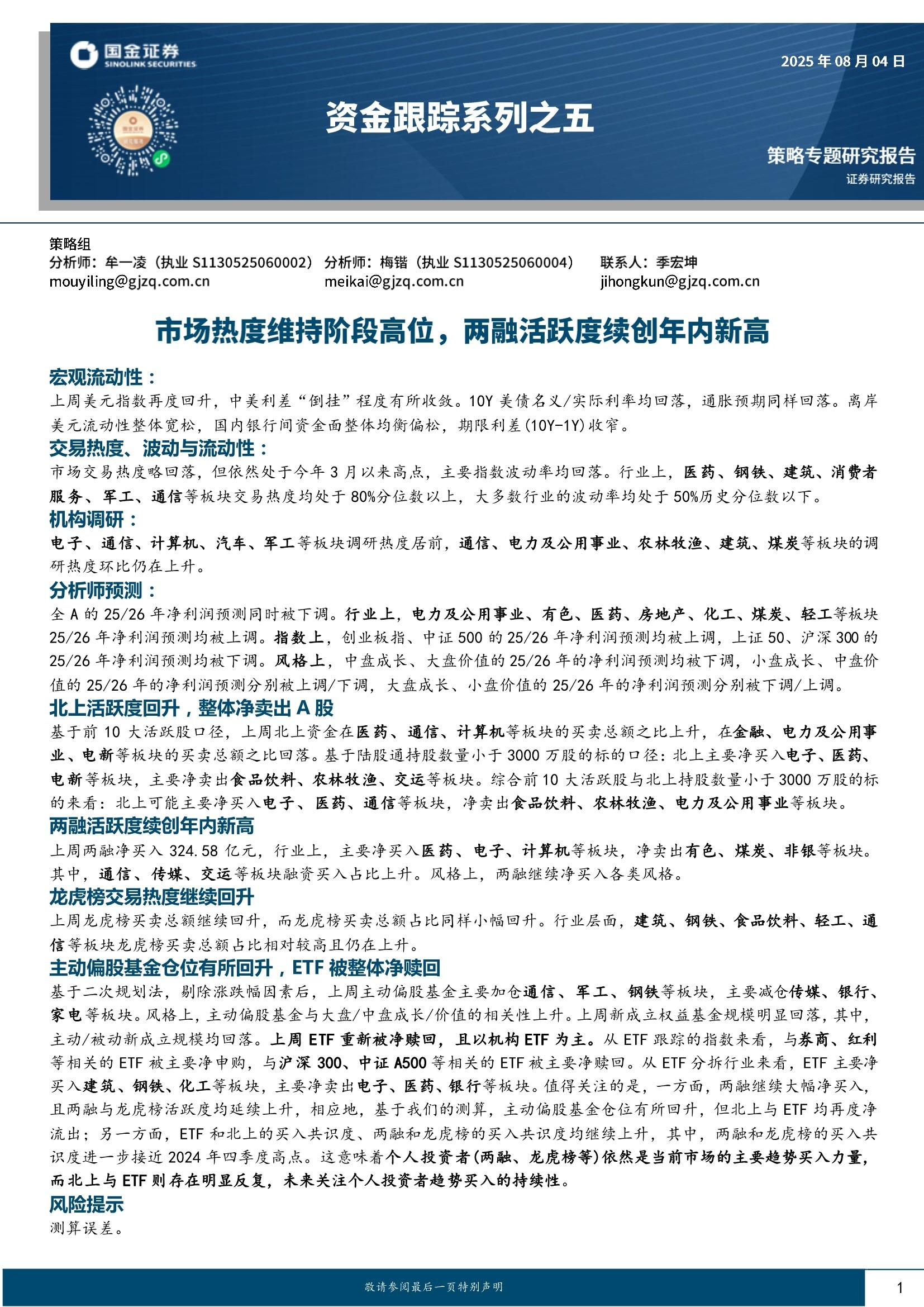 【国金证券】【202508】资金跟踪系列之五:市场热度维持阶段高位,两融活跃度续创年内新高-32页