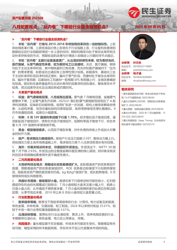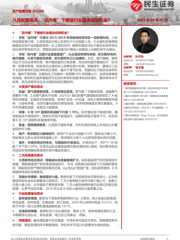 【民生证券】【202508】资产配置月报-八月配置视点:“反内卷”下哪些行业蕴含投资机会?-33页