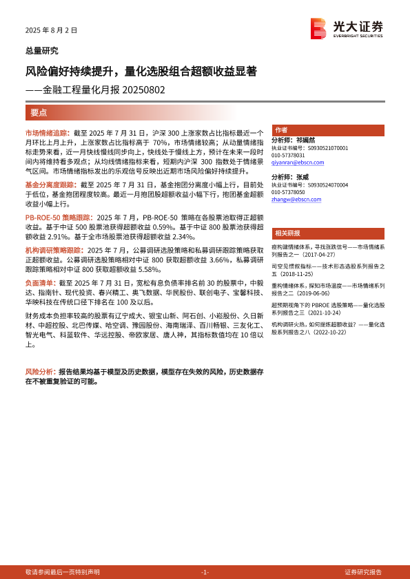 【光大证券】【202508】风险偏好持续提升,量化选股组合超额收益显著-12页
