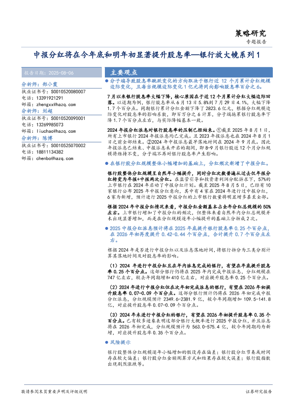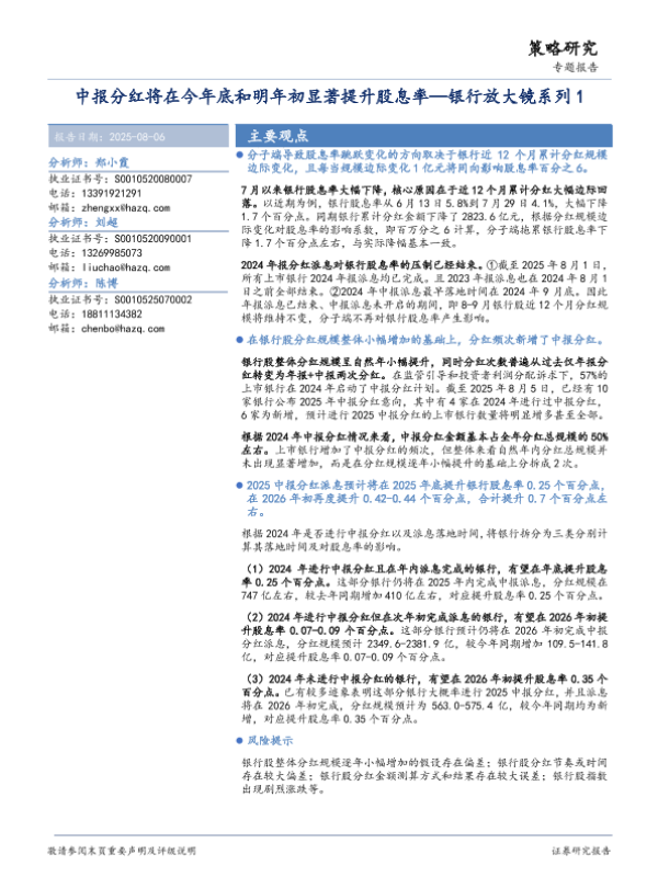 【华安证券】【202508】银行放大镜系列1:中报分红将在今年底和明年初显著提升股息率-18页