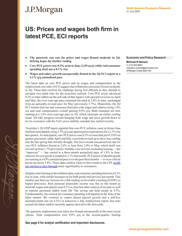 【J.P. Morgan】【202507】Prices and wages both firm in latest PCE, ECl reports-9页