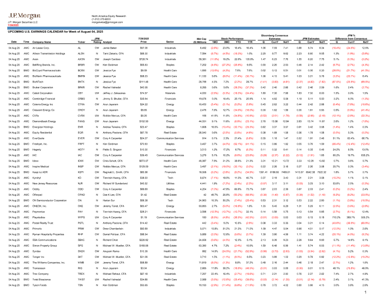 【J.P. Morgan】【202507】UPCOMING U.S. EARNINGS CALENDAR for Week of August 04, 2025-12页