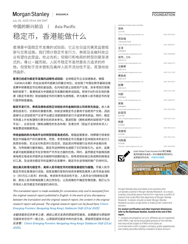 【Morgan Stanley】【202507】中国的新兴前沿1Asia Pacific 稳定币,香港能做什么-14页
