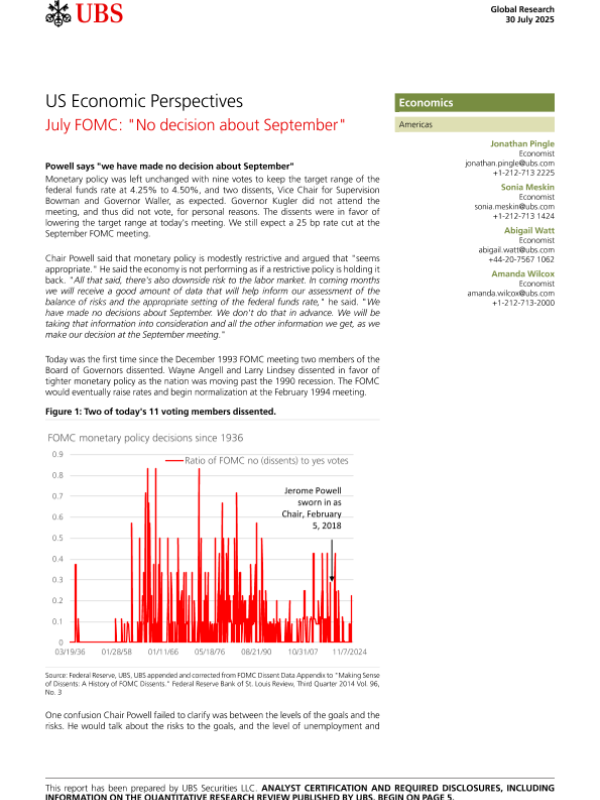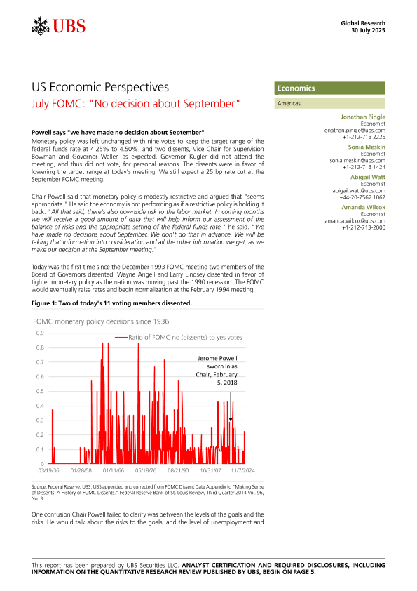 【UBS】【202407】July FOMC "No decision about September"-6页