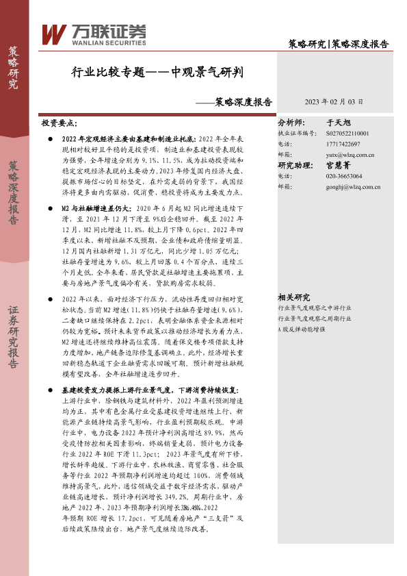 【万联证券】【20230203】策略深度报告:行业比较专题,中观景气研判-18页