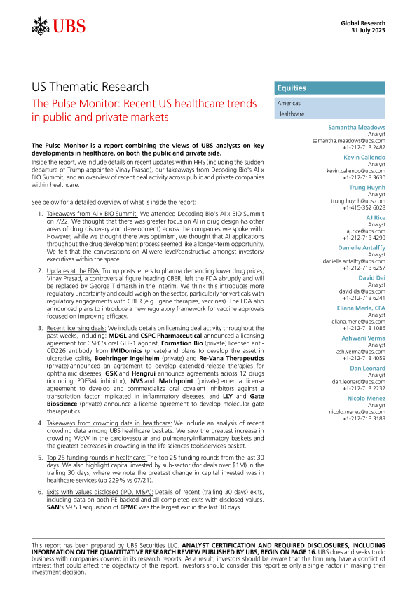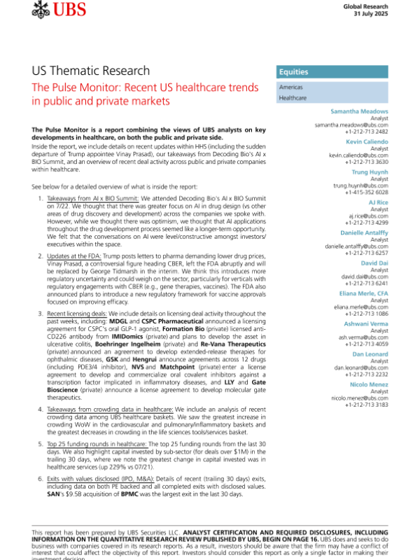 【UBS】【202507】US Thematic Research The Pulse Monitor Recent US healthcare trends in public and private markets-23页