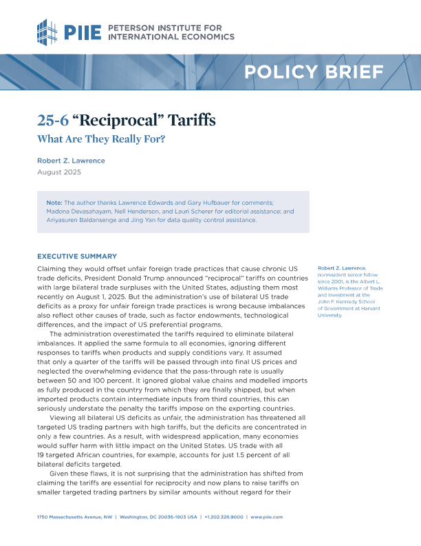 【彼得森经济研究所】【202508】“Reciprocal” Tariffs What Are They Really For?-18页