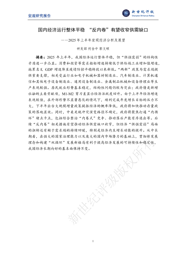 【新世纪评级】【2025】国内经济运行整体平稳 “反内卷”有望收窄供需缺口——2025年上半年宏观经济分析及展望-19页