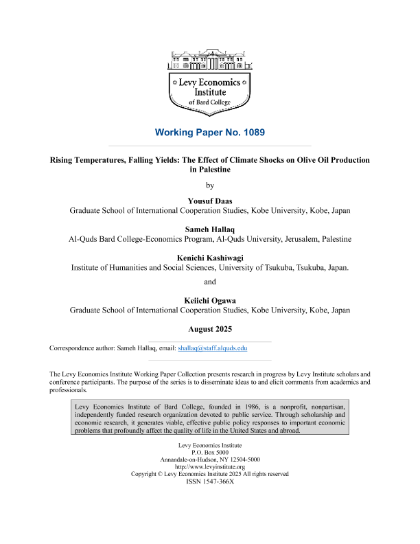 【Levy Economics Institute of Bard College】【2025】Rising Temperatures, Falling Yields The Effect of Climate Shocks on Olive Oil Production in Palestine-27页