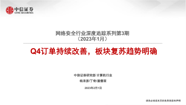 【中信证券】【20230201】网络安全行业深度追踪系列第3期(2023年1月):Q4订单持续改善,板块复苏趋势明确-18页
