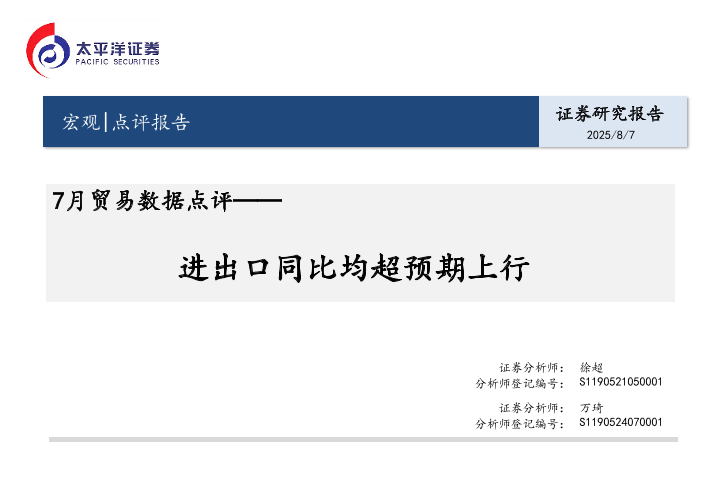 【太平洋证券】【202508】进出口同比均超预期上行-12页