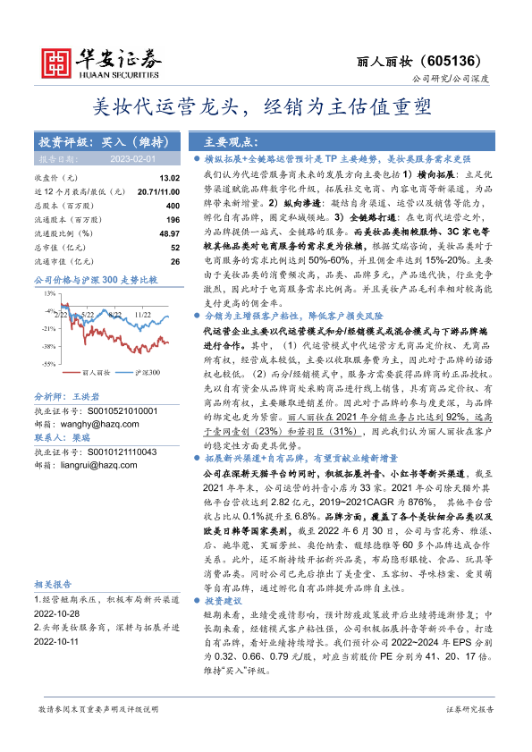 【华安证券】【20230201】美妆代运营龙头,经销为主估值重塑-23页
