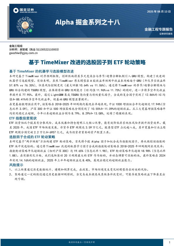 【国金证券】【202508】Alpha掘金系列之十八:基于TimeMixer改进的选股因子到ETF轮动策略-17页