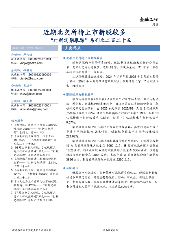【华安证券】【202508】“打新定期跟踪”系列之二百二十五:近期北交所待上市新股较多-15页