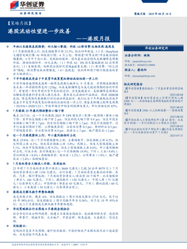 【华创证券】【202508】港股月报:港股流动性望进一步改善-12页
