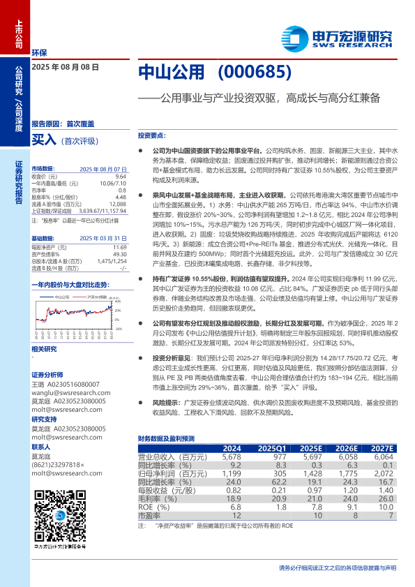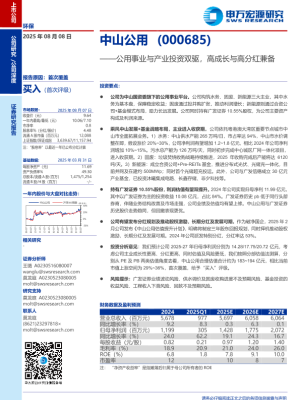 【申万宏源】【202508】中山公用(000685)——公用事业与产业投资双驱,高成长与高分红兼备-27页