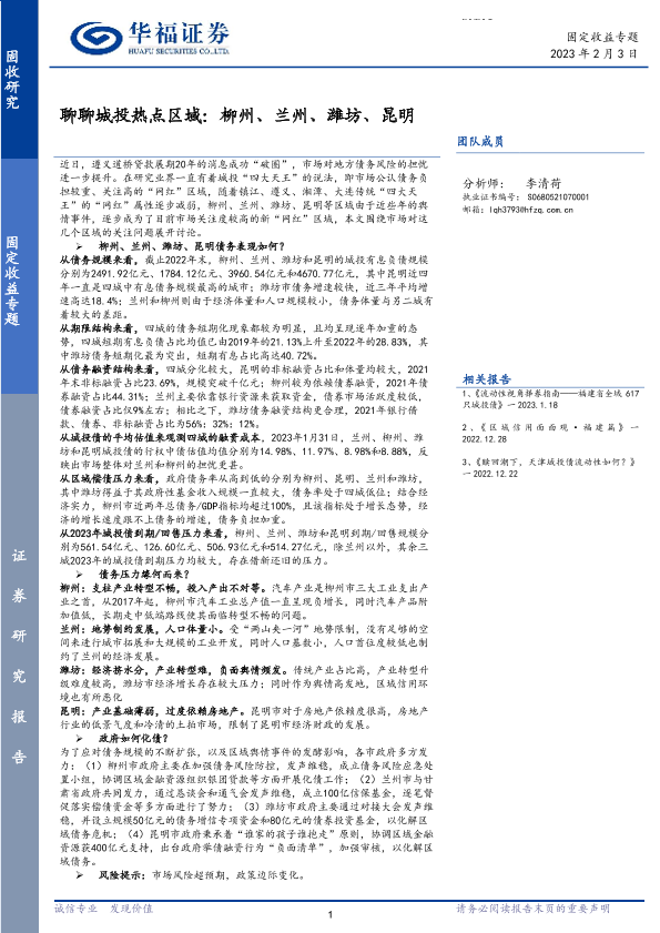 【华福证券】【20230203】聊聊城投热点区域:柳州、兰州、潍坊、昆明-22页