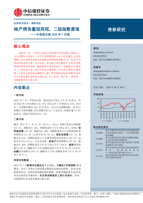 【中信建投证券】【202508】中资美元债 2025年 7月报——地产债务重组再现,二级指数普涨-14页