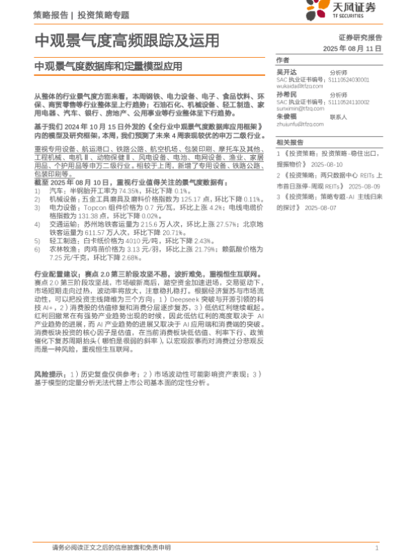 【天风证券】【202508】中观景气度高频跟踪及运用:中观景气度数据库和定量模型应用-18页