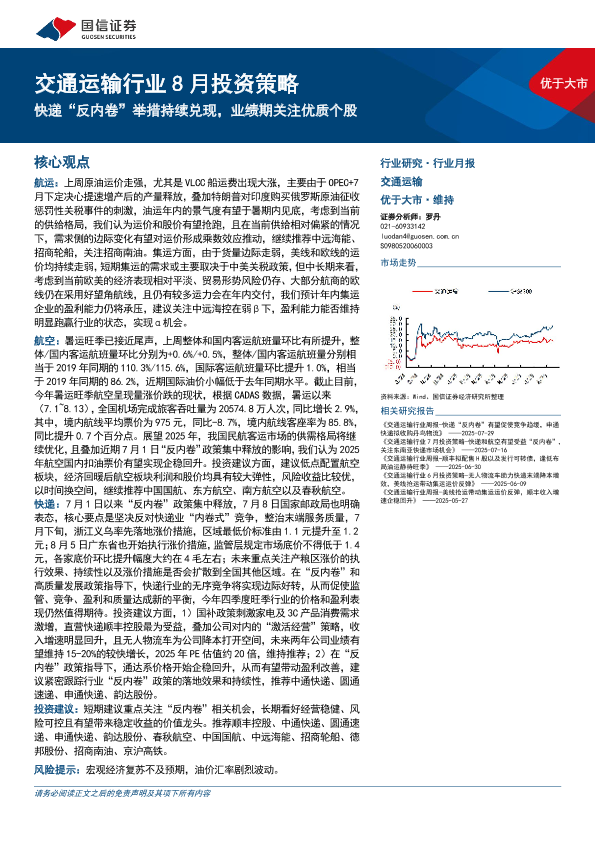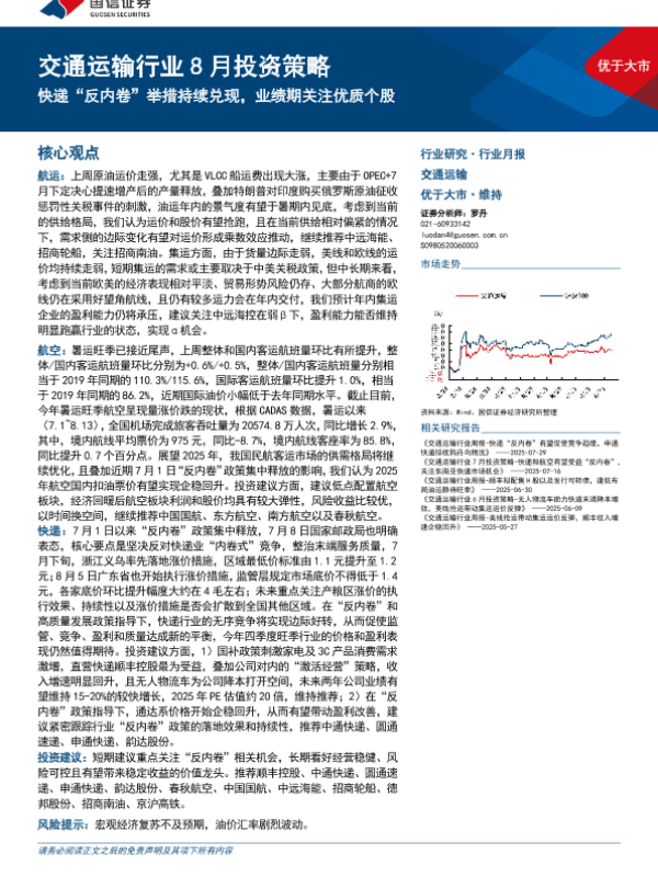 【国信证券】【202508】优于大市 交通运输行业 8月投资策略-22页