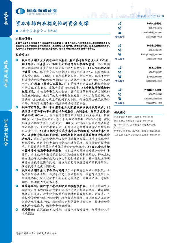 【国泰海通证券】【202508】优化中长期资金入市机制:资本市场内在稳定性的资金支撑-25页