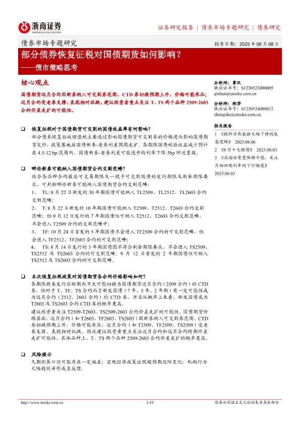【浙商证券】【202508】债市策略思考:部分债券恢复征税对国债期货如何影响?-10页