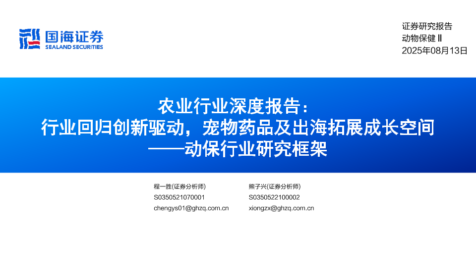 【国海证券】【202508】农业行业深度报告: 行业回归创新驱动,宠物药品及出海拓展成长空间 ——动保行业研究框架-50页